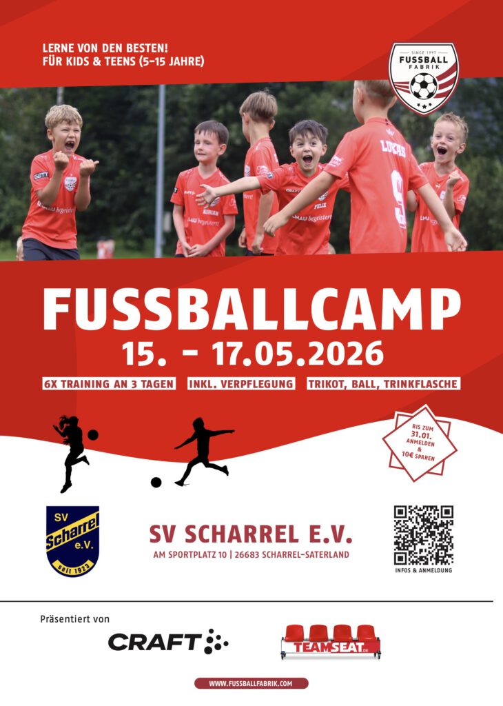 Bist du bereit für ein Wochenende voller Fußball, Spaß und Action? Dann komm zum Fußballcamp 2026 in Scharrel! Drei Tage lang dreht sich alles um den Ball – mit spannenden