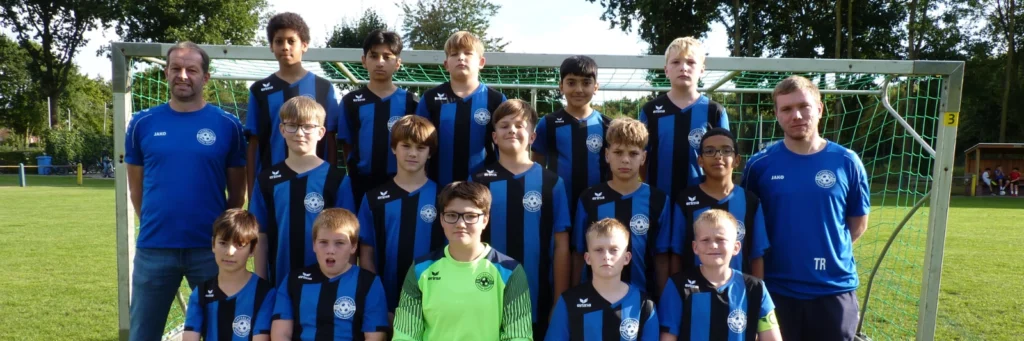 Mittlere Reihe: Luca Gehrels, Tobias Plaggenborg, Sten Jonte Emken, Joeel-Enrico Richert, Ahmed Chaouch, Luca Witte (Trainer)