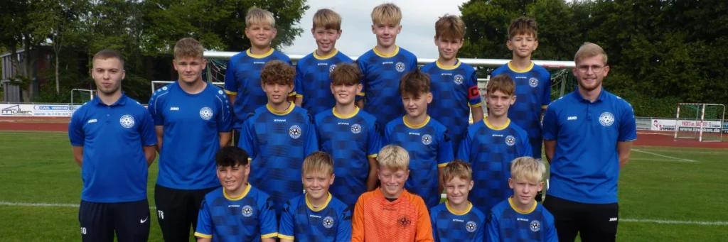 Mittlere Reihe: Tobias Deeken (Trainer), Rene Hermes Trainer, Lennox Fits, Hanno Kramer, Tamme Reens, Noah Klassen, Sven Meyer (Trainer)
